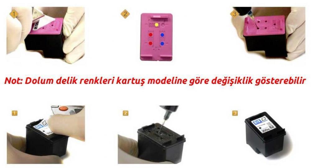Not :Bu sette orjinal kartuş yoktur. Kartuşunuzu doldurmak için gerekli olan malzemeler vardır. Kendi kartuşunuzu bu setle doldurabilirsiniz.